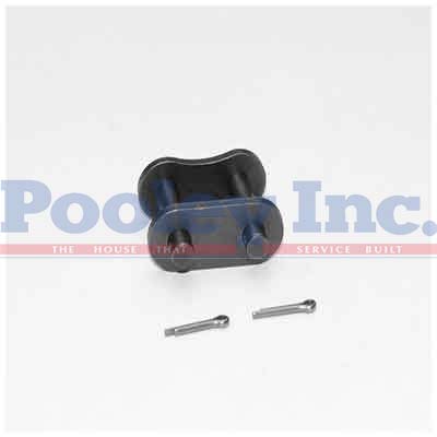Split cotters are supplied with slip fit closing plates for ease of assembly in the field. Connecting links are used to connect the ends of the roller chain strand into an endless loop. Each connecting link is individually packaged in a sealed plastic bag.