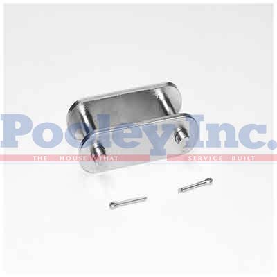 Split cotters are supplied with slip fit closing plates for ease of assembly in the field. Closing plates are “flat” style to improve fatigue strength. Connecting links are used to connect the ends of the roller chain strand into an endless loop. Each connecting link is individually packaged in a sealed plastic bag.